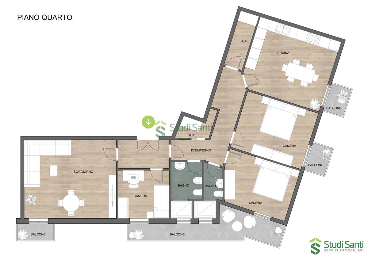 Bitonto-Zona cinque croci: Proponiamo in vendita, in esclusiva, luminoso quattro vani oltre accessori di 120 mq interni, ubicato al quarto piano in stabile servito di ascensore. L'immobile è situato in zona centrale e ben servita con tutta l'offerta commerciale a pochi passi; scuole e asili sono facilmente raggiungibili a piedi. L'appartamento è così composto: ingresso, disimpegno, cameretta con balcone esterno su Piazza Caduti del Terrorismo, salone con balcone sulla piazza, corridoio, bagno con vasca e finestra, ripostiglio, tinello con doppio servizio e angolo cottura con esposizione esterna sulla piazza, camera da letto con balcone si Via Magenta, corridoio con armadio a muro, cameretta con esposizione esterna su Via magenta e ripostiglio.