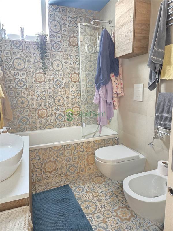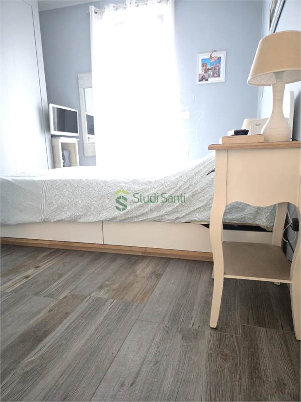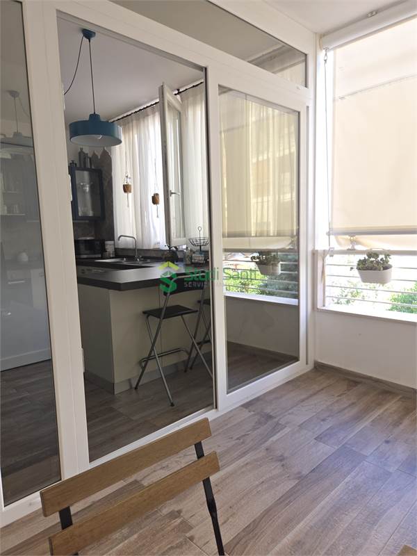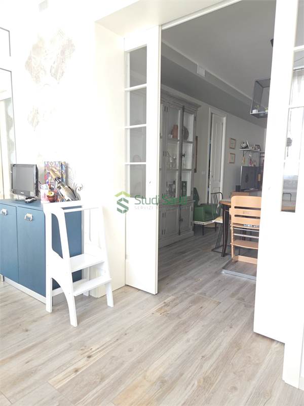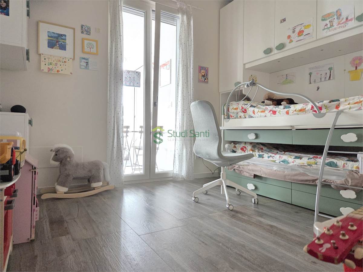 Rifiniture: porta d'ingresso blindata, riscaldamento e raffrescamento al pavimento, impianto canalizzato per deumidificatore, pavimentazione in gress porcellanato effetto parquet, videocitofono, infissi in pvc doppio vetro con apertura vasi stasi, zanzariere, tapparelle elettriche, tende da sole, impianto d'allarme, due porte a scrigno per accedere nella zona tinello, fracasè, fibra e pannelli solari condominiali.
